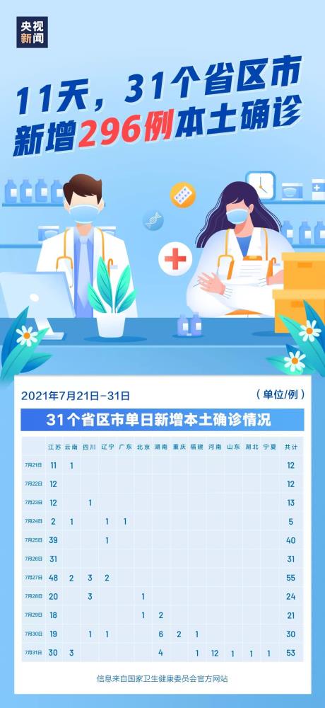 近日,全國(guó)多地發(fā)生疫情。僅僅7月21日至7月31日的11天內(nèi),31個(gè)省區(qū)市(含兵團(tuán))就已新增...