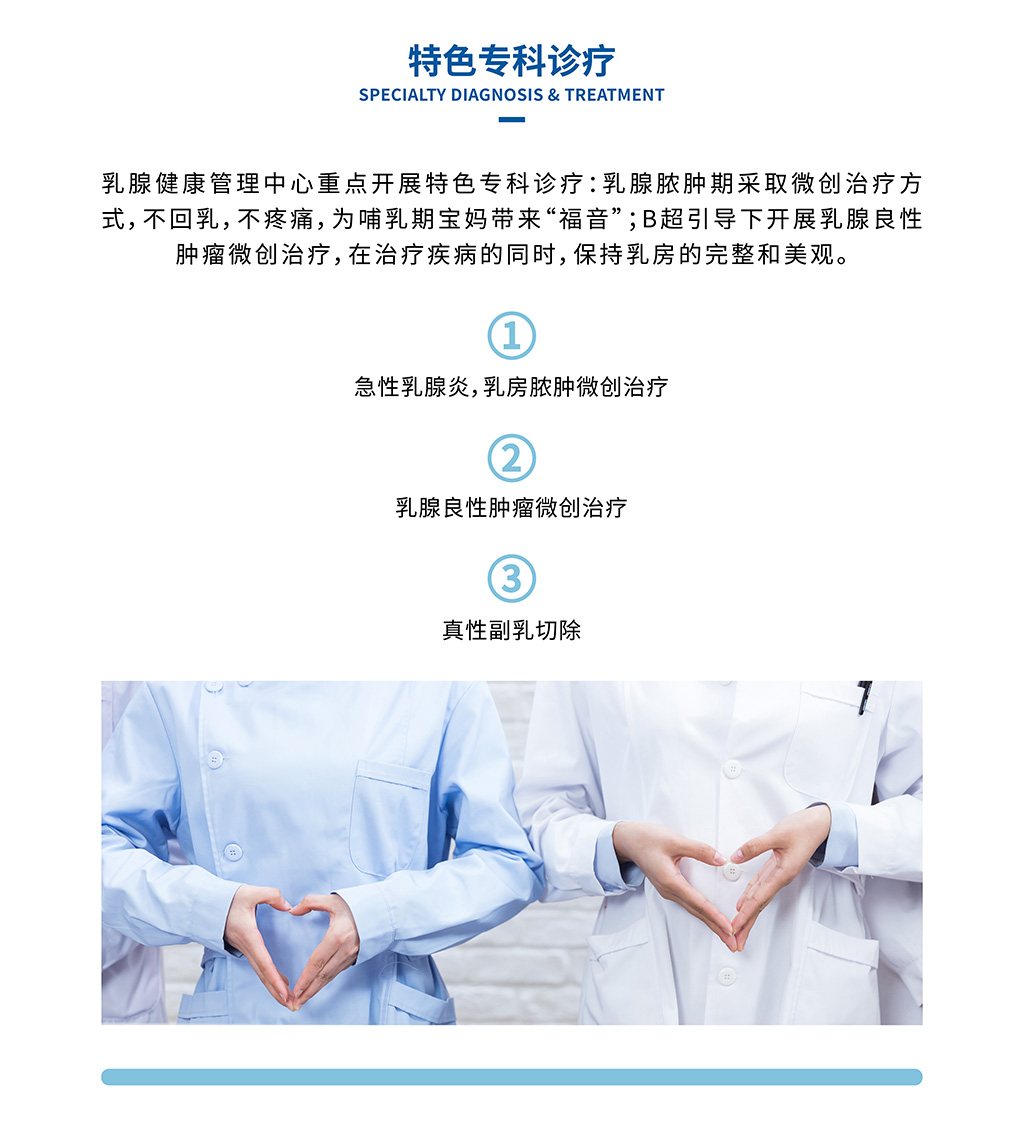 從女性乳房青春期發(fā)育異常,到成年常見的乳腺增生,到哺乳期好發(fā)的急性乳腺炎,到更年期好發(fā)的乳腺癌,對女性乳房健康的全生命周期健康管理。對乳腺疾病相關(guān)的學(xué)科,乳腺外科、整形美容科,婦科、內(nèi)分泌科,腫瘤科等相關(guān)學(xué)科進(jìn)行深度融合。以科學(xué)診療,個性化診療為特色,為女性乳腺健康保駕護(hù)航。