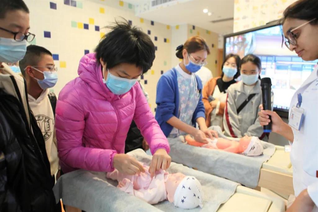 第一次了解關(guān)于嬰兒的知識(shí),同學(xué)們都非常感興趣,認(rèn)真地聽(tīng)著醫(yī)生解說(shuō)。