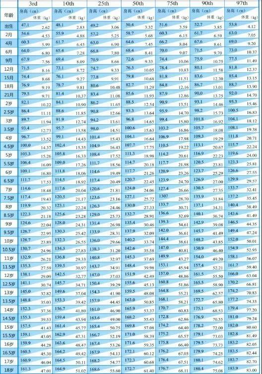 生長曲線就是一張網(wǎng)和七條曲線。網(wǎng)的橫軸是孩子的年齡,縱軸是代表孩子的體重或身高(分為體重、身高兩張表)。