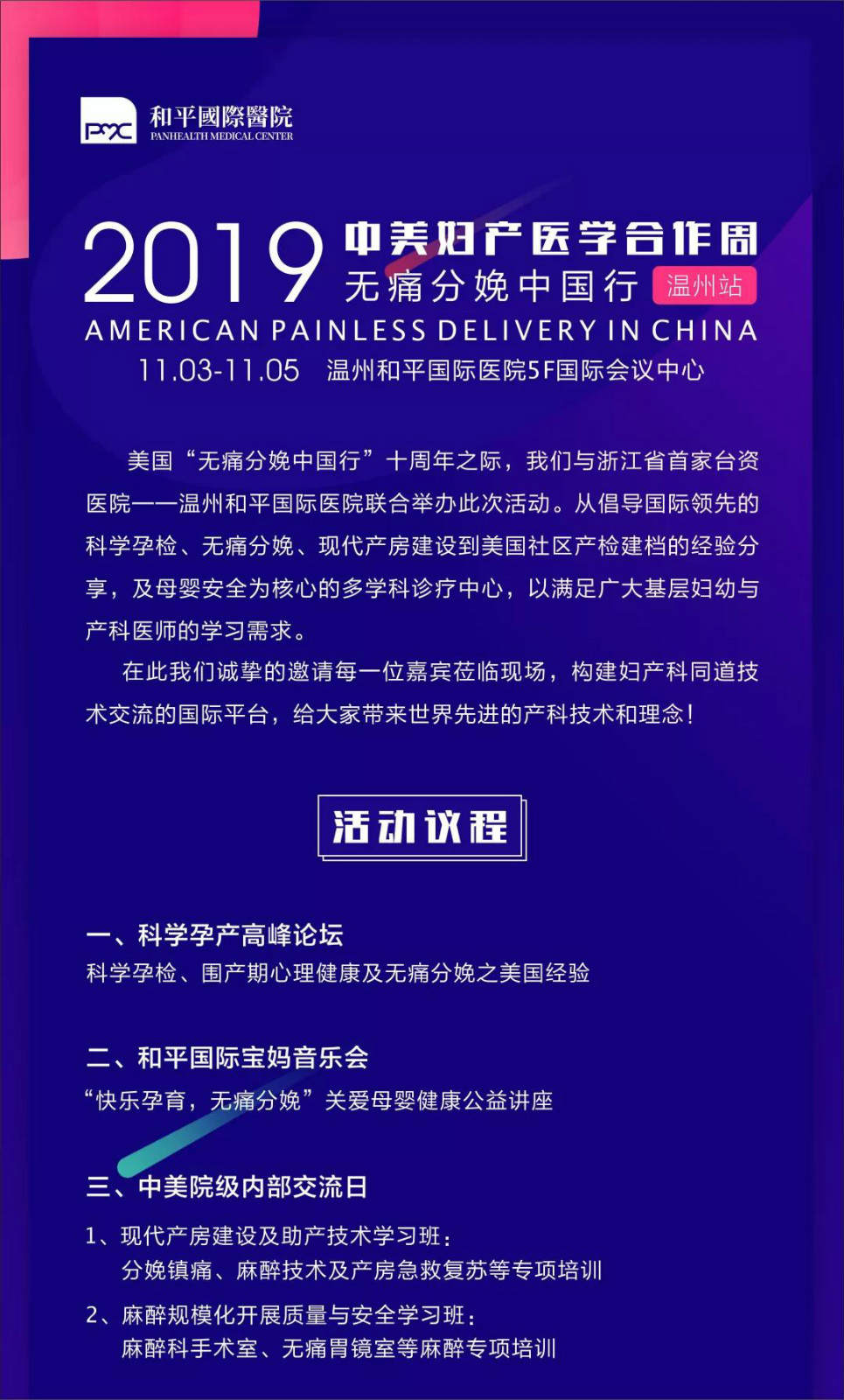 2019中美婦產(chǎn)醫(yī)學(xué)合作周暨“無(wú)痛分娩中國(guó)行”溫州站