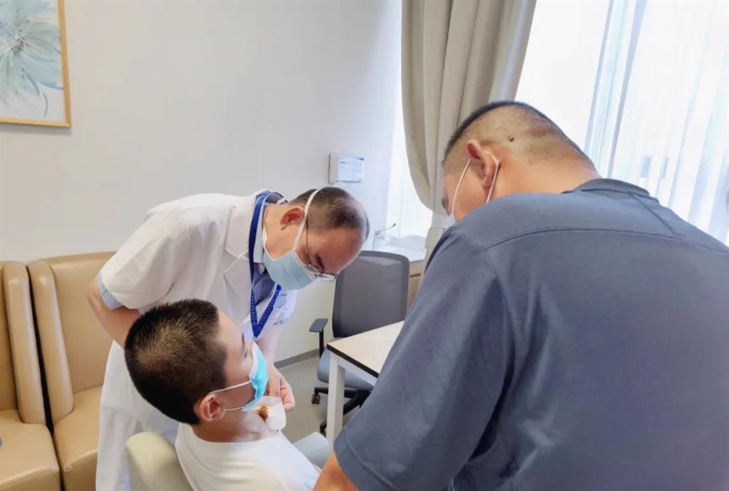 與陳先生的病情不同,今年11歲的小施,因做了瘢痕切除手術(shù)在父母的陪同下前來復(fù)診。“切口的藥需要換一下,再開點抗炎、消腫藥吃吃,主要是保護(hù)創(chuàng)口和預(yù)防疤痕增生。”林主任仔細(xì)地檢查了小施的傷口,并開具了外用藥物。