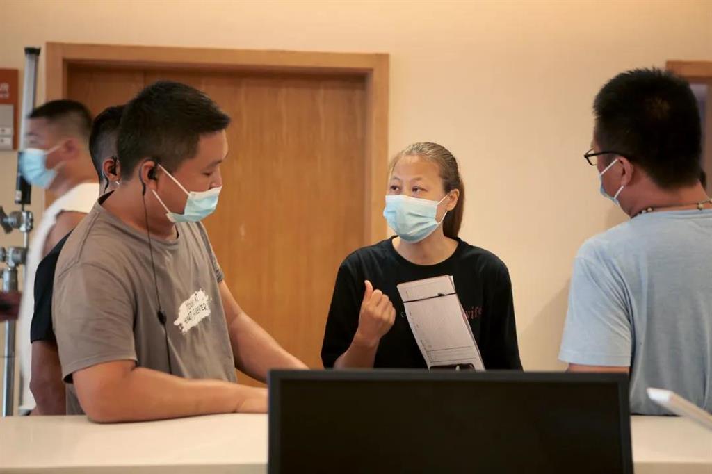 當(dāng)下疫情防控仍處緊要關(guān)頭,每一個環(huán)節(jié)都需嚴把嚴控,因此醫(yī)院在與劇組協(xié)商后控制了入院拍攝的人數(shù),并對入院進行拍攝作業(yè)的工作人員,逐一進行核酸檢測、體溫測量、行程碼查驗。當(dāng)問及劇組為什么會選擇和平國際醫(yī)院進行拍攝時,制片人這樣說,“因為這里的場景和劇中的場景很相近,不管是設(shè)計風(fēng)格還是環(huán)境氛圍,都正好是我們想要的”。和平國際醫(yī)院是一家有著臺資背景的醫(yī)院,而該劇導(dǎo)演林合隆也是臺灣人,因此在選擇和平國際醫(yī)院作為拍攝地,對于林合隆來說有著難以言說的親切感。 (片場畫面)