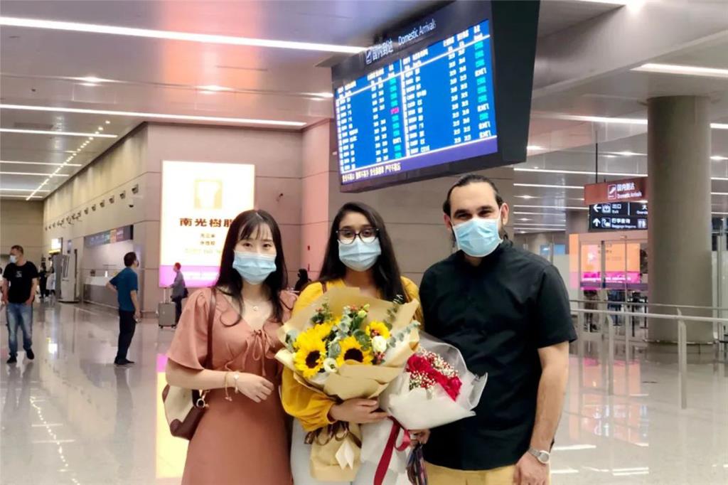 話音剛落,蘇瑪就被大家的鮮花和掌聲所包圍,這是和平國際醫(yī)院黨委、醫(yī)務人員代表為她準備的接機“驚喜”。在眾人的歡聲笑語中,丈夫豪孟德又為她獻上了一束芬芳撲鼻的玫瑰。