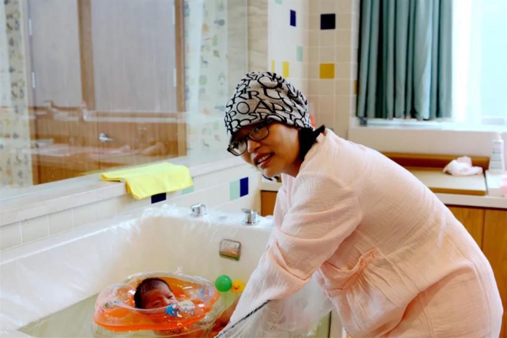 剛生完孩子我的腰還是有點(diǎn)痛的,到了第三天狀態(tài)就好了很多,護(hù)士長(zhǎng)帶寶寶去洗澡、游泳,還幫我叫來(lái)了擅長(zhǎng)看骨科的周健副院長(zhǎng),周醫(yī)生還逗了逗我家的老大。