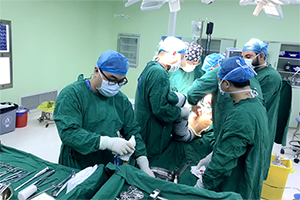 手術當天,主刀醫(yī)生、和平國際醫(yī)院副院長周健根據(jù)術前方案,順利完成手術。周健介紹,手術的難度,其實相當于做了四個手術:第一個手術,取掉內固定螺釘;第二個手術,清理關節(jié),切除疤痕;第三個手術,重建髖臼,穩(wěn)定骨盆后壁;第四個手術才是全髖置換(安裝特制臼杯、股骨頭柄)。