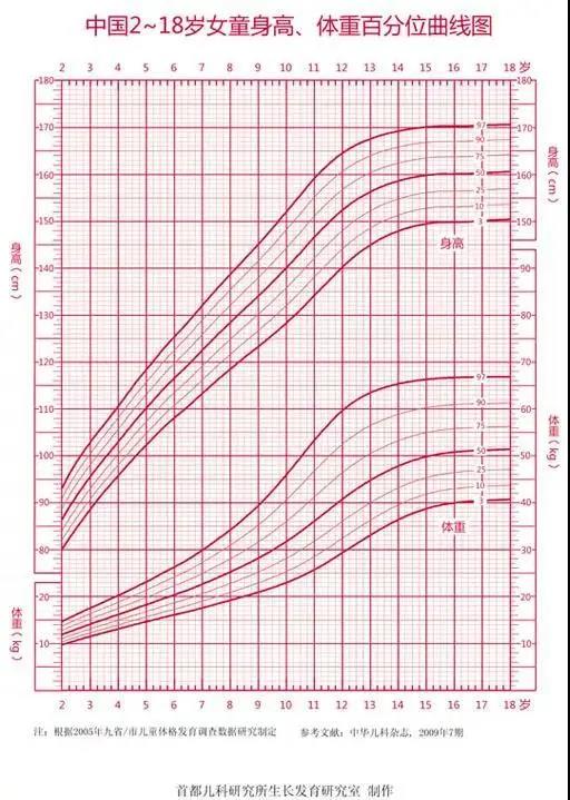 生長曲線就是一張網(wǎng)和七條曲線。網(wǎng)的橫軸是孩子的年齡,縱軸是代表孩子的體重或身高(分為體重、身高兩張表)。