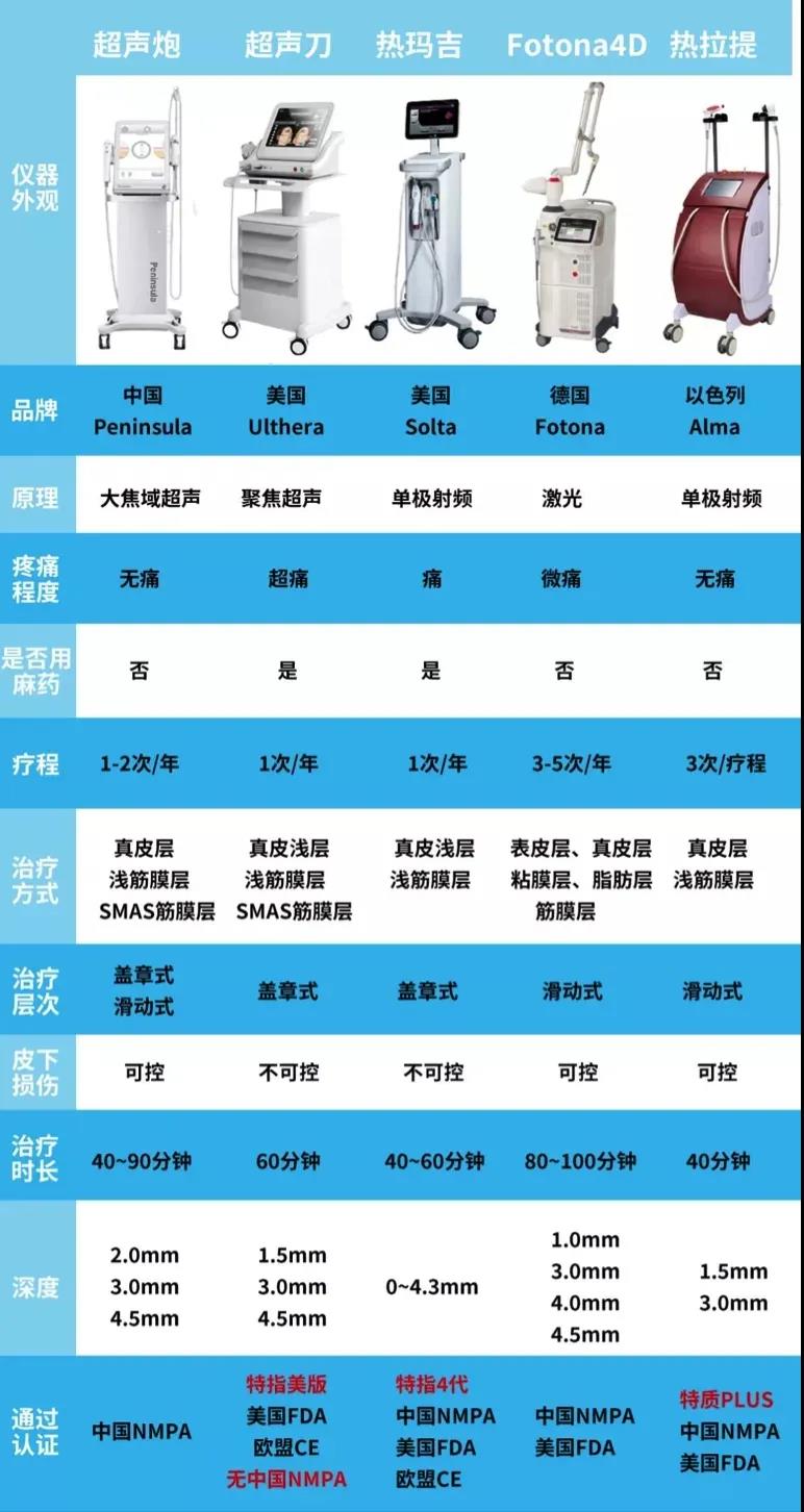 有著嚴(yán)格的認(rèn)證標(biāo)準(zhǔn)在國(guó)內(nèi)都未取得相應(yīng)批文半島超聲炮到底有哪些功能?是超聲刀的升級(jí)版嗎?帶著這些問(wèn)題,下面就讓我們來(lái)詳細(xì)說(shuō)說(shuō)!超聲炮是全新超聲緊膚醫(yī)療設(shè)備,采用微點(diǎn)聚焦的方式,將超聲波能量聚焦在皮下SMAS筋膜層、真皮層等,并且形成一個(gè)微細(xì)熱凝固點(diǎn)TCP(Focal Thermal Coagulation Points),由此起到提拉緊致的作用,達(dá)到筋膜懸吊拉皮的效果,再由深至淺改善皮膚皮下結(jié)構(gòu),令老化的膠原蛋白收縮,并刺激膠原蛋白增生和重組,使皮膚恢復(fù)彈性。可以精準(zhǔn)作用于皮膚不同層次、達(dá)到緊致、提升、抗衰、去皺的功效;是目前國(guó)內(nèi)唯一一臺(tái)獲得NMPA認(rèn)證的“國(guó)產(chǎn)超聲刀”。