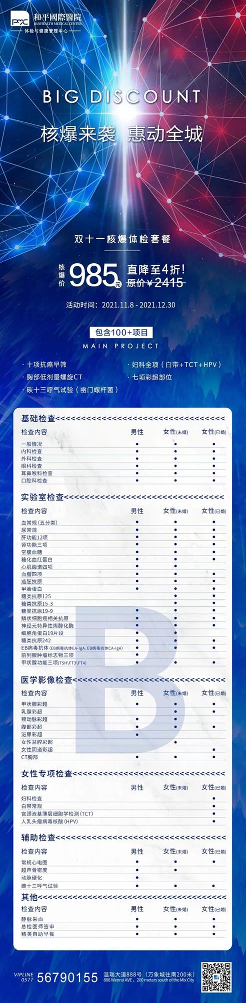 需要提醒大家的是,每個(gè)個(gè)體存在差異性,因此并不是所有的人都適合完全相同的檢查,因此除常規(guī)檢查外,還需要根據(jù)自身實(shí)際情況選擇檢查項(xiàng)目,做有用的檢查,避免花冤枉錢。