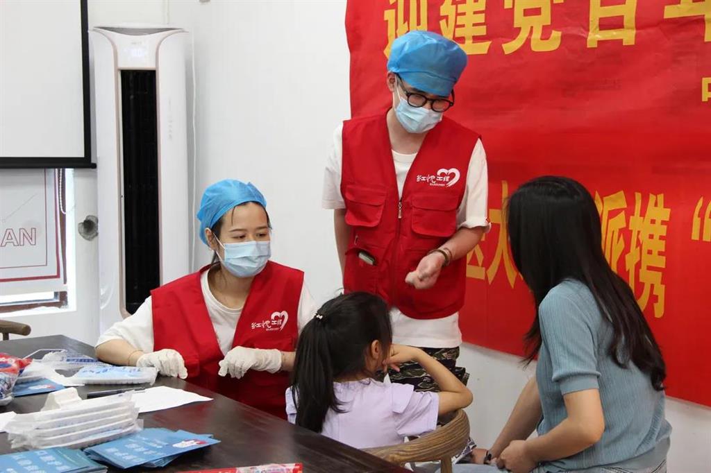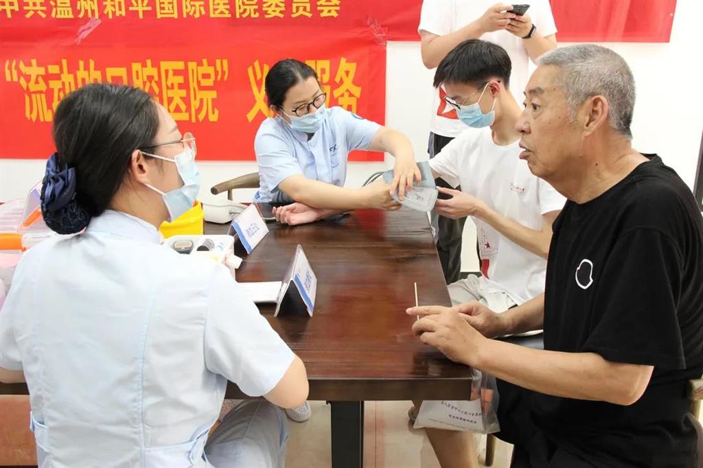 7月7日上午九點半,氣溫33℃,沒有一點風(fēng),和平國際醫(yī)院“紅悅工程”攜手南白象街道南垟社區(qū)服務(wù)中心、2021年溫醫(yī)大口腔醫(yī)學(xué)院本碩博“樂伢派”暑期社會實踐團、溫州商學(xué)院“壹點愛”暑期社會實踐隊,來到四季原著小區(qū),為小區(qū)居民帶來了量血壓、測血糖、骨密度檢測、口腔檢查、兒童生長發(fā)育等義診服務(wù)。