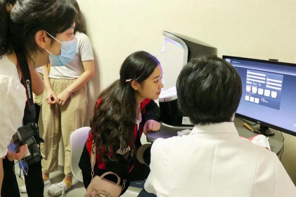 女同學(xué)們饒有興趣地體驗(yàn)了VISA皮膚檢測。皮膚美容科主任吳麗微介紹了醫(yī)院的醫(yī)美設(shè)備和醫(yī)美項(xiàng)目,更是引起了同學(xué)們的聲聲驚嘆。