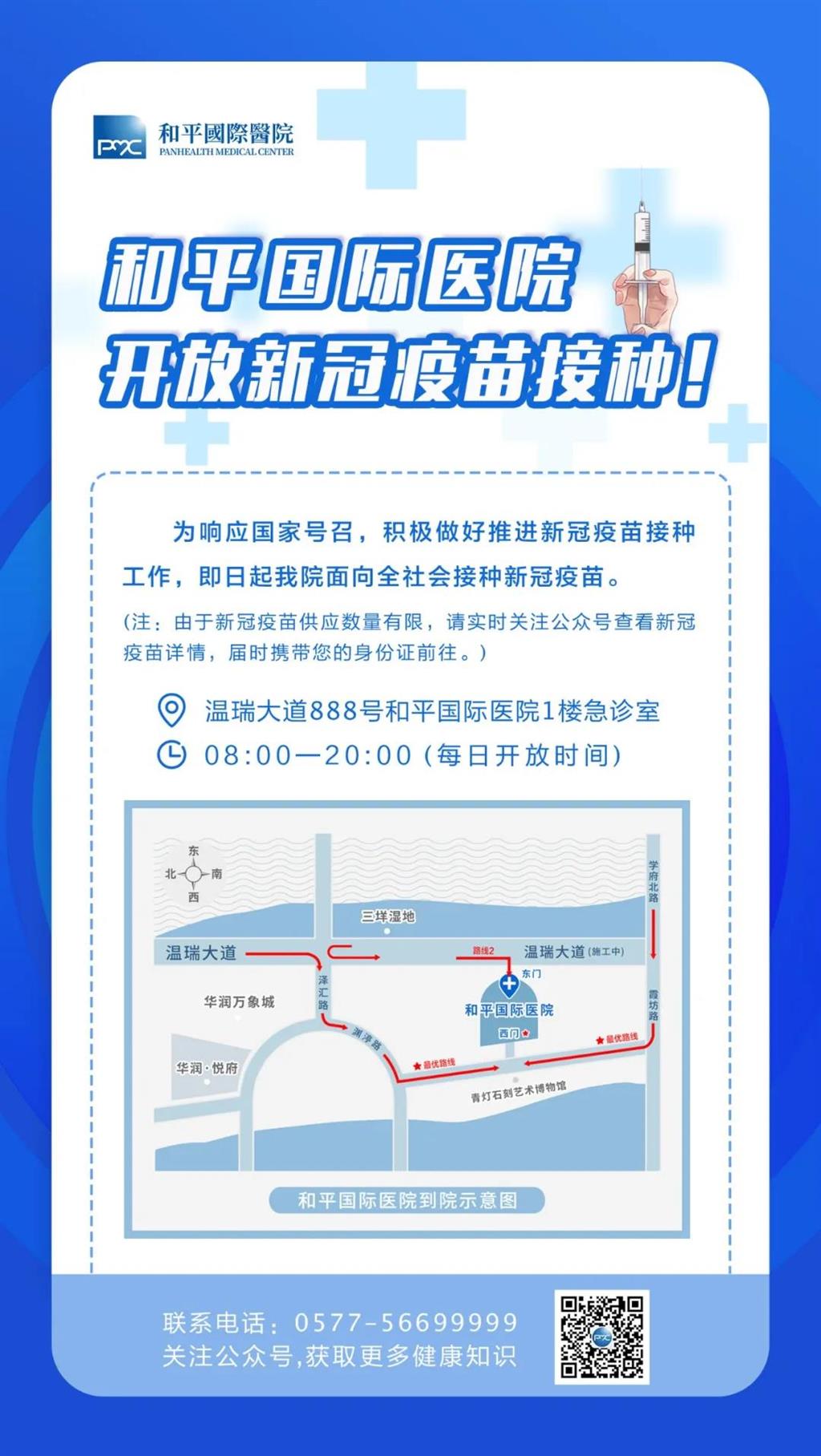 還未接種新冠疫苗的人群,可攜帶身份證于每日13:30—20:00前往和平國(guó)際醫(yī)院,1樓新冠疫苗接種點(diǎn)進(jìn)行疫苗接種。