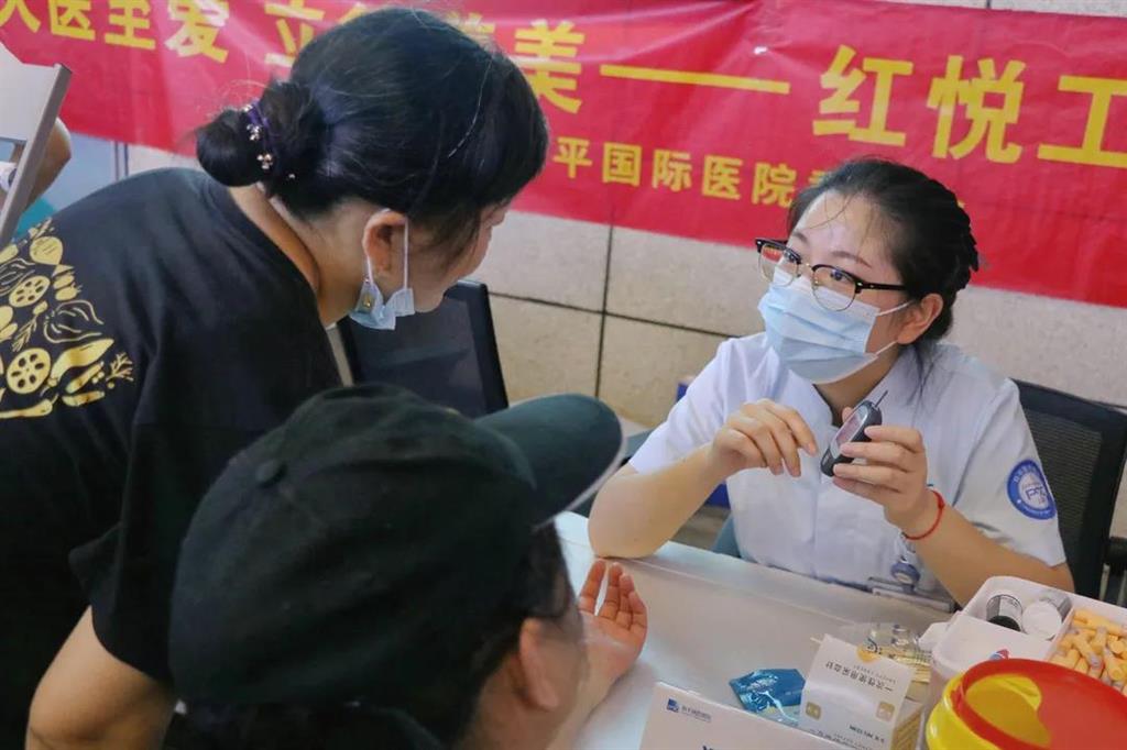 義診現(xiàn)場(chǎng),醫(yī)護(hù)人員一落座,便不斷地有居民來(lái)檢測(cè)、問(wèn)診。“紅悅工程”義診醫(yī)療隊(duì)根據(jù)實(shí)際診療情況,向居民普及新冠疫苗的接種知識(shí),進(jìn)行(量血壓,測(cè)血糖等)身體健康檢查。