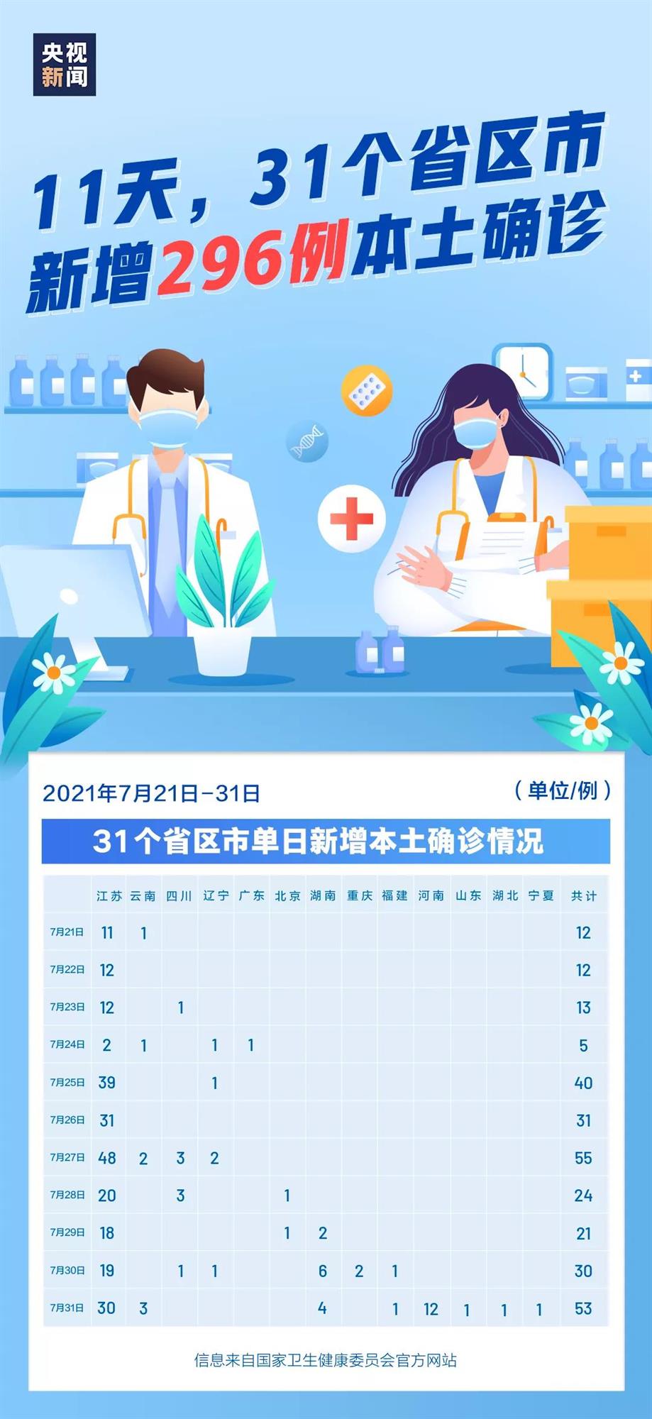 近日,全國(guó)多地發(fā)生疫情。僅僅7月21日至7月31日的11天內(nèi),31個(gè)省區(qū)市(含兵團(tuán))就已新增296例本土確診病例。