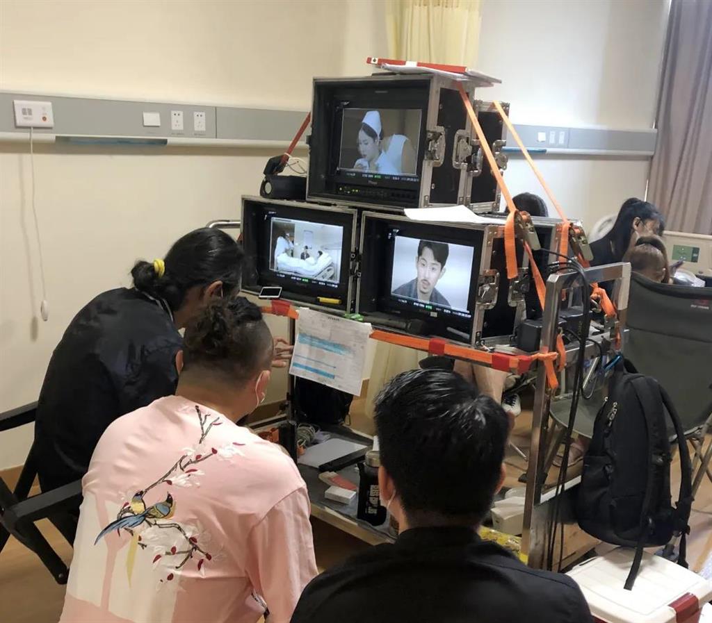 當(dāng)下疫情防控仍處緊要關(guān)頭,每一個環(huán)節(jié)都需嚴把嚴控,因此醫(yī)院在與劇組協(xié)商后控制了入院拍攝的人數(shù),并對入院進行拍攝作業(yè)的工作人員,逐一進行核酸檢測、體溫測量、行程碼查驗。當(dāng)問及劇組為什么會選擇和平國際醫(yī)院進行拍攝時,制片人這樣說,“因為這里的場景和劇中的場景很相近,不管是設(shè)計風(fēng)格還是環(huán)境氛圍,都正好是我們想要的”。和平國際醫(yī)院是一家有著臺資背景的醫(yī)院,而該劇導(dǎo)演林合隆也是臺灣人,因此在選擇和平國際醫(yī)院作為拍攝地,對于林合隆來說有著難以言說的親切感。 (片場畫面)